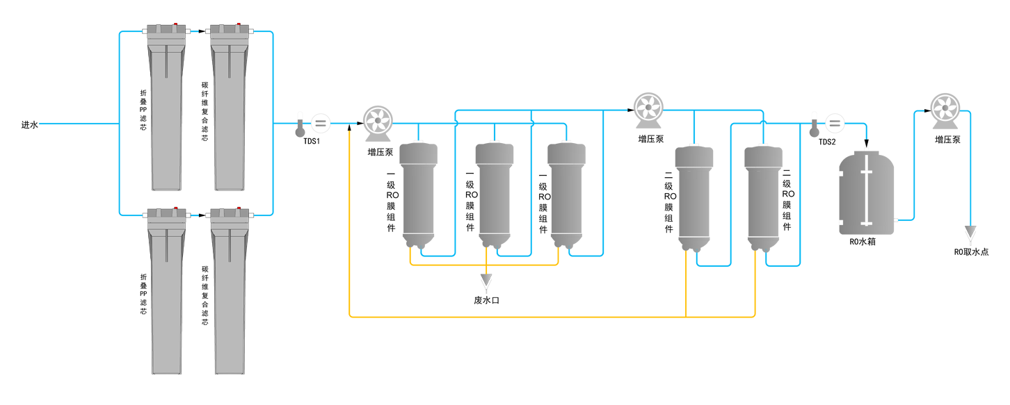 | 二級RO水 | 二級RO水離子截留率>99%(新RO膜),電導(dǎo)率 ≤5μs/cm; 有機(jī)物/顆粒/細(xì)菌截留率>99% | |||