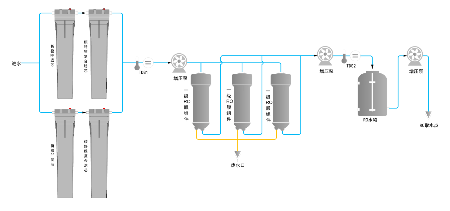 | 一級RO水 | 離子截留率98%-99%(新膜),有機(jī)物截留率>99%(MW>200道爾頓)、顆粒和細(xì)菌截留率>99% | |||